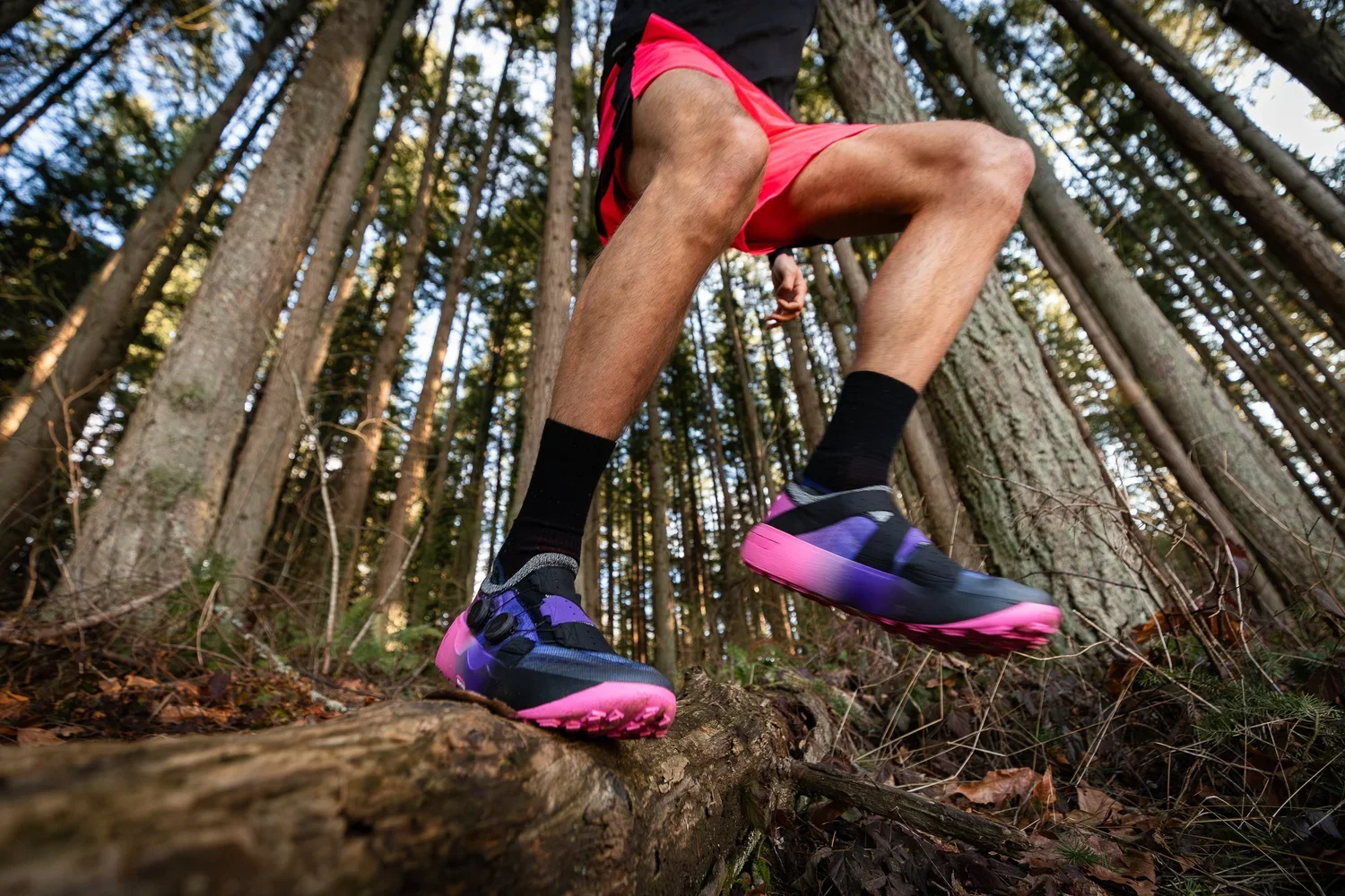 The shoot moved between controlled studio builds and real trail environments. In studio, we layered natural elements with intentional light to highlight technical features like the BOA fit system and sculpted construction. Out on the trails, we captured the shoe in motion through creeks and waterlogged paths, emphasizing grip, durability, and performance under real conditions.